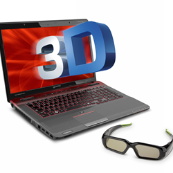 The Qosmio X770 3D, featuring NVIDIA 3D Vision™ technology10, offers full stereoscopic 3D entertainment for gaming, movies, photos and more. Featuring a 17.3-inch diagonal 120Hz 3D-ready, 1080p HD TruBrite LED backlit display7, this laptop includes a pair of wireless active shutter glasses for out-of-the-box 3D enjoyment, plus essential components for Blu-ray 3D playback, 2D-to-3D movie conversion, plus output to a 3DTV, the Qosmio X770 3D delivers a full suite of 3D enjoyment.